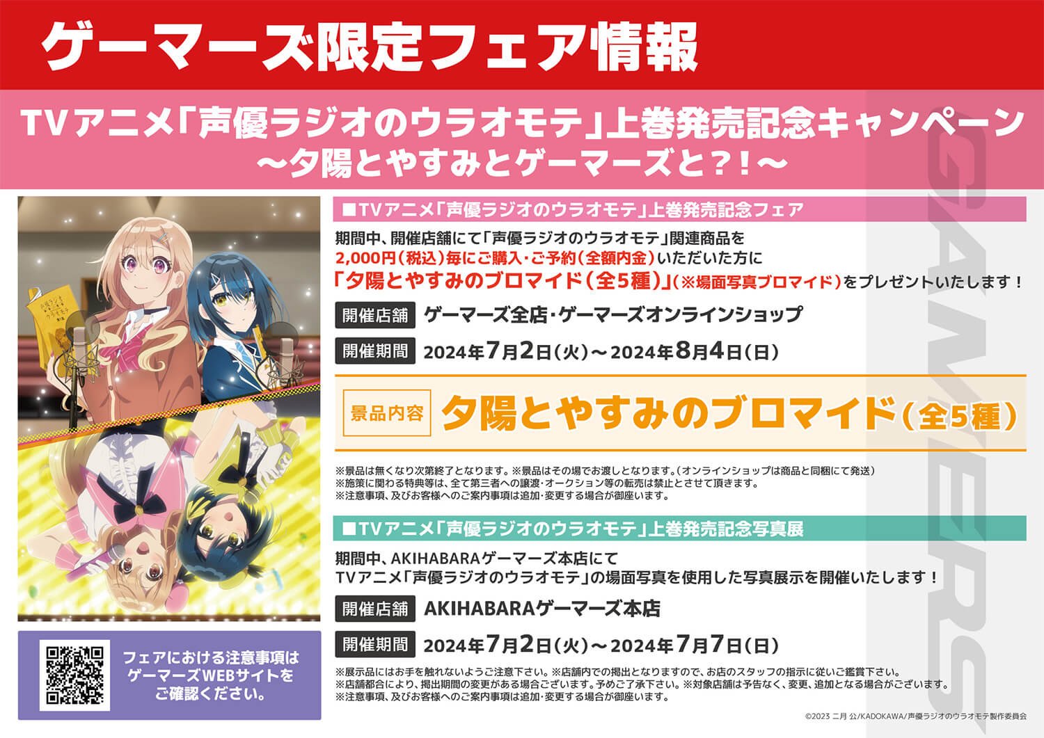 TVアニメ「声優ラジオのウラオモテ」上巻発売記念キャンペーン~夕陽とやすみとゲーマーズと?!~