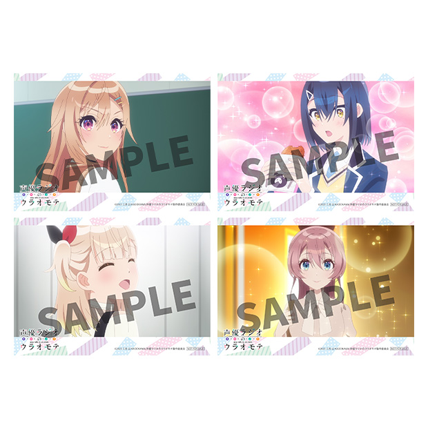 期間中、開催店舗にて「声優ラジオのウラオモテ」関連商品を2,000円(税込み)毎にご購入・ご予約(全額内金)いただいた方に「夕陽とやすみのブロマイド(全5種)」(※場面写真ブロマイド)をプレゼントいたします!